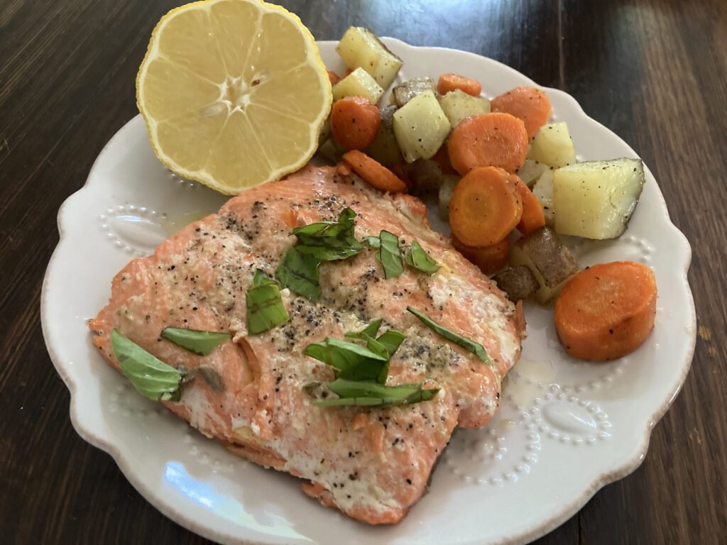 Butter, lemon and salmon melt together into a savory melt in your mouth dish in this recipe. Make sure the salmon is fully defrosted or the salmon may taste fishy. If you forget to defrost the salmon you can cook the salmon completely frozen in the oven for 10 minutes at 350 degrees. After this you can follow the recipe as described. The flavor and texture won’t be optimum, but it does the trick in a pinch!